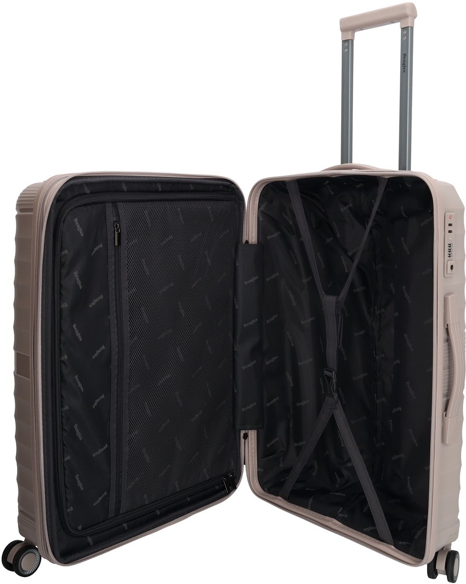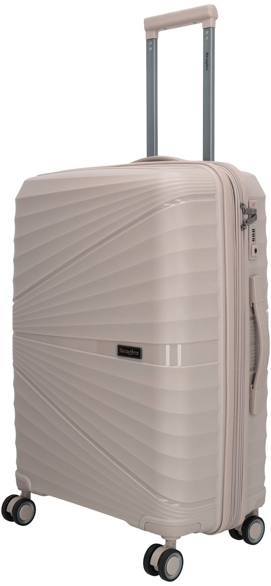 Bereit für Ihr nächstes Abenteuer? Mit demBeagles Originals mittelgroßen Kofferin der trendigen Farbe Helltaupe (L.TAUPE) reisen Sie nicht nur organisiert, sondern auch stilvoll. Dieser robusteKoffer, auch alsTrolleybekannt, ist der perfekte Reisebegleiter für einen Urlaub von ein bis zwei Wochen. Dank der vier leichtgängigen Schwenkrollen und des ausziehbaren Griffs lässt sich der Koffer mühelos durch jeden Flughafen oder Bahnhof manövrieren – Schluss mit dem Schleppen! Der Koffer ist so konzipiert, dass er Ihr Gepäck optimal schützt und gleichzeitig leicht ist. So können Sie mehr Gepäck mitnehmen, ohne Übergewicht zu riskieren. Ob Städtetrip oder entspannter Sonnenurlaub – dieser Koffer vereint Funktionalität mit einem modischen Hartschalen-Look. Das mittelgroße Gepäckstück bietet viel Platz und eine durchdachte Aufteilung, um all Ihre wichtigen Dinge ordentlich und sicher zu verstauen.
