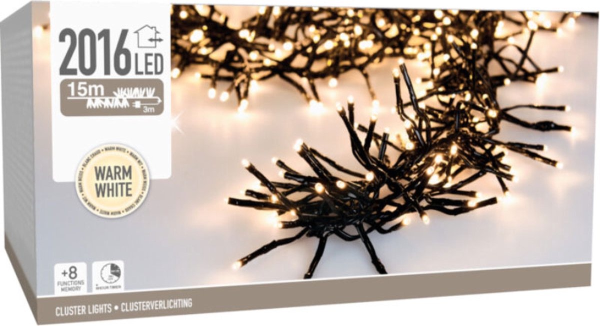 Clusterbeleuchtung/Weihnachtsbeleuchtung 2016 LED – Warmweiß – 15 Meter