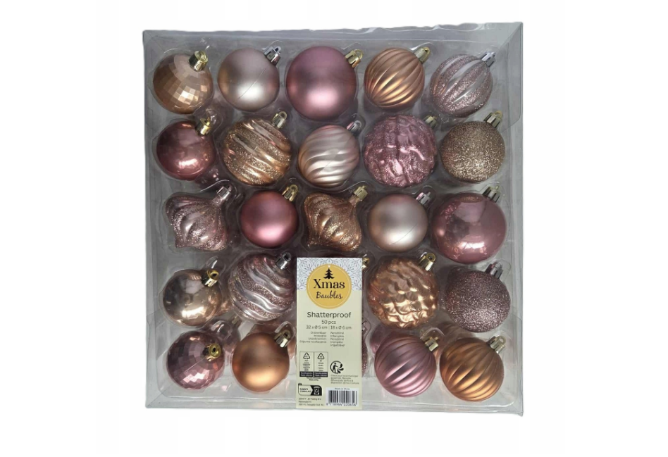 Christmas balls 50 pieces - Christmas decoration - Plastic - Pink