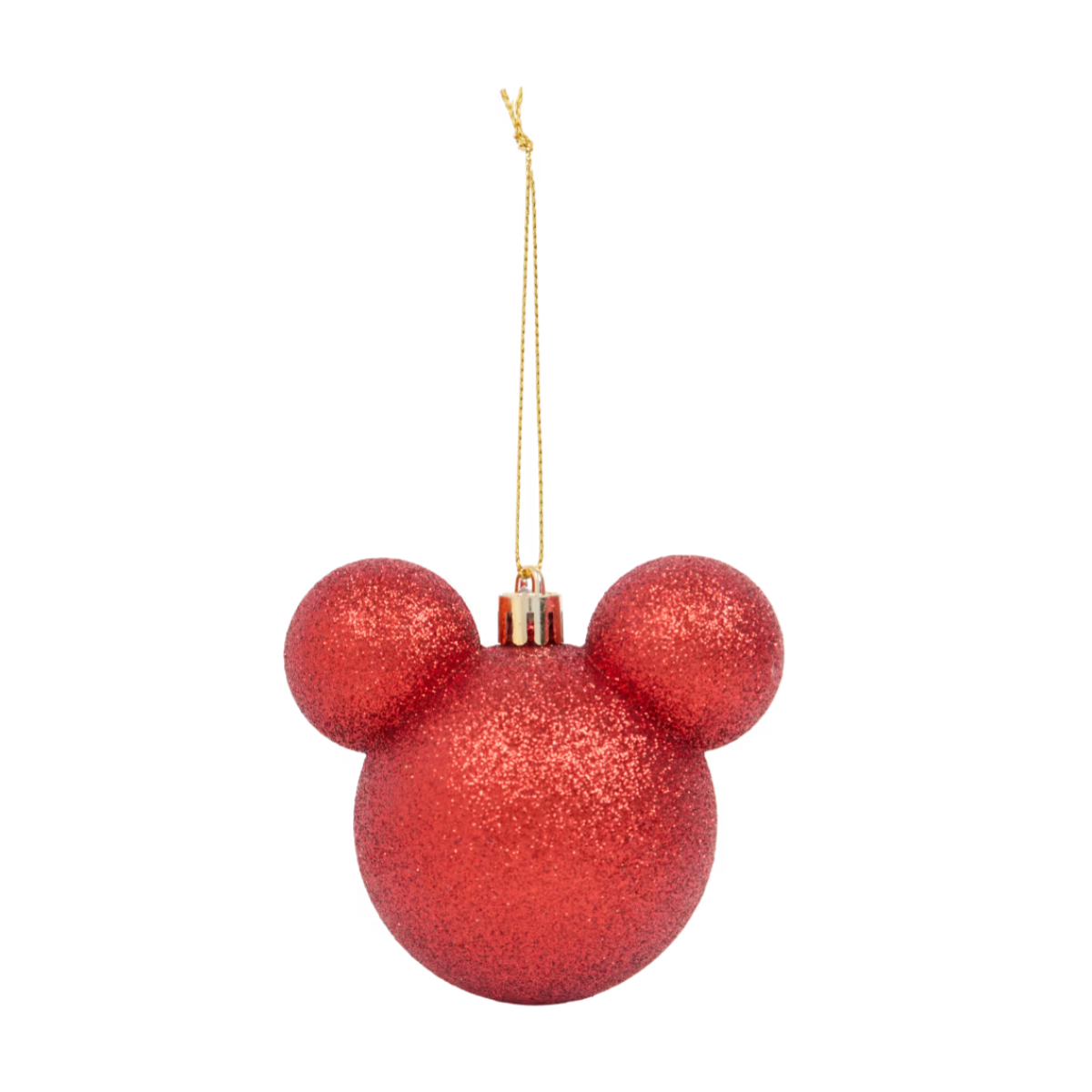 - Set of four Christmas baubles with iconic Mickey Mouse silhouette in red with a shiny glitter finish