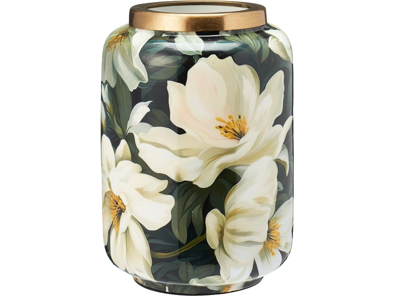 Vase à motif floral - Vert/Blanc - Ø15 x 20,5 cm