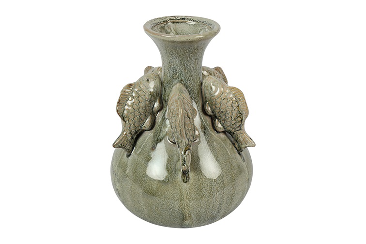 Vase Poisson Pierre Ø17 x 24,5 cm - Vert